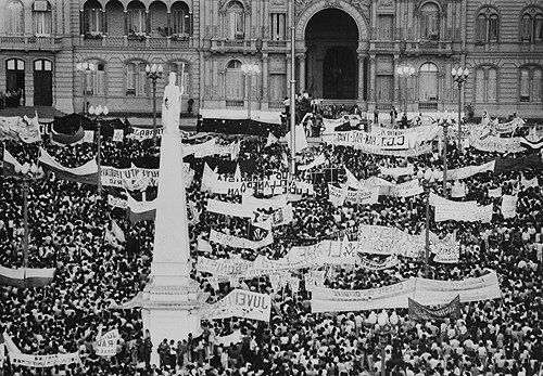 la dictadura se la llevó puesta una guerra, es ningunear a los millones de argentinos que fueron a la huelga y se movilizaron frente al poderío militar en el poder, por las razones que fueran, pero haciéndolo. ¿No lo hicieron en el 76 y sí lo hicieron varios años después? Cierto, pero se hizo frente, y aún sabiendo que no había ninguna garantía. Creer que la gente reaccionó contra De La Rúa recién cuando le tocaron los ahorros, es cagarse en los millones de argentinos que no tenían un cobre en ningún banco y olvidarse de los años de protestas virulentas y silenciadas en el interior del país.