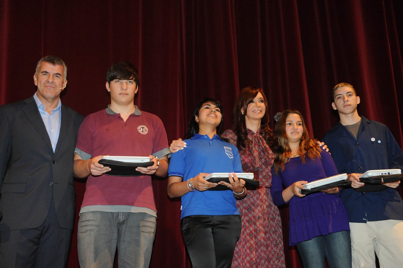Jóvenes de las clases menos pudientes de la Argentina, recibiendo sus notebooks nacionales y populares.
